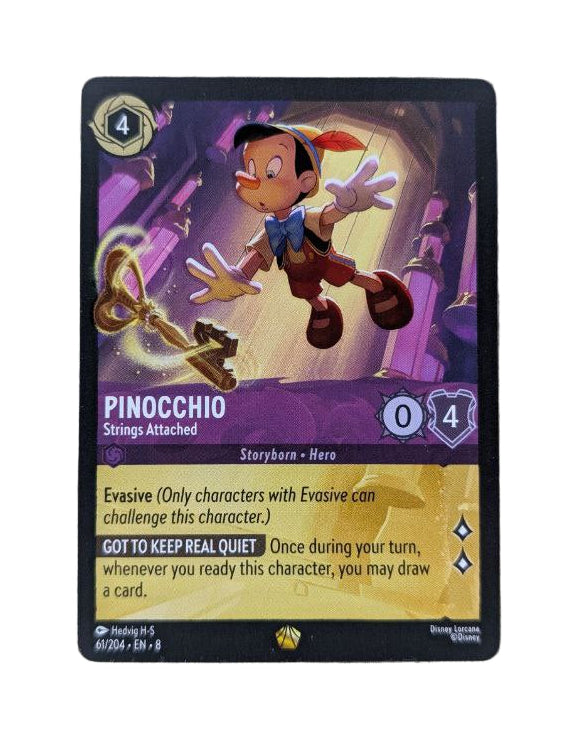 Lorcana, Pinocchio - Strings Attached, 61/204-en-8 Reign of Jafar card Raw, item in sleeve